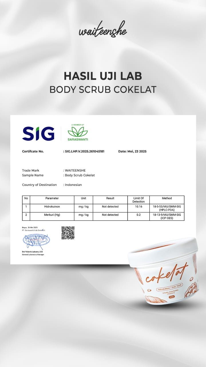 Seluruh Produk dari WAITEENSHE juga sudah melalui Proses Pengecekan Uji Lab SIG Sehingga dipastikan AMAN & TERBEBAS dari Bahan Berbahaya Seperti Mercury / Hidroquinon.